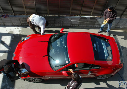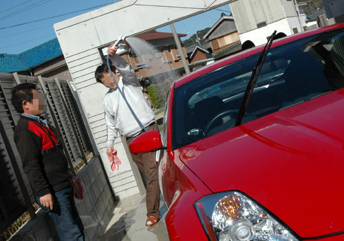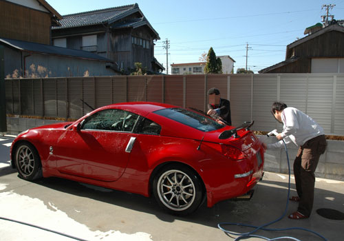 ↑なぜか、自分のクルマを仲間が洗って、本人は赤Zの洗車を手伝っていました。