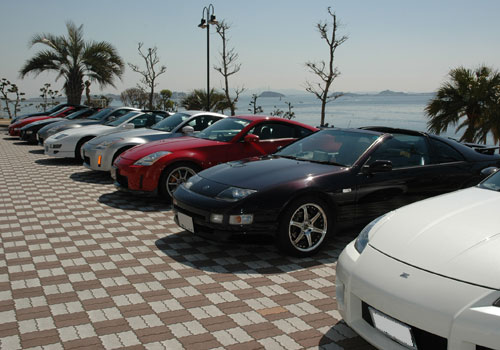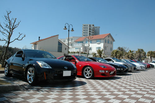 ↑先頭を走って来た僕は、必然的に端っこに駐車しました!Z33とZ32が入り混じって