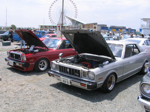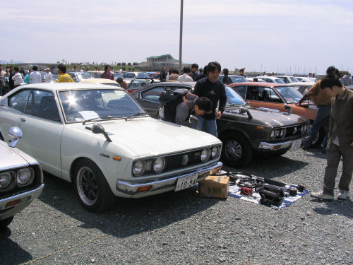 ISUZU へレット コルト ギャラン デボネア トヨタ カリーナ トヨタ マーク?とチェイサー ハコスカ(上)とハコスカS20のエンジンルーム内(下) フェラーリ ディーノ マーク? 三菱ランサー セレステ 日野・コンテッサ 伊良湖岬、赤羽海岸の様子