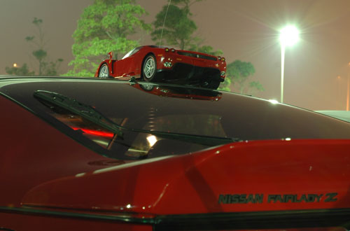 ↑フェアレディZの上にエンツォ・フェラーリが!これなら、フェラーリと言ってもらえるね!(笑)