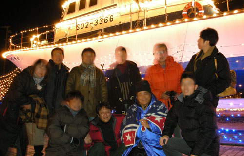↑今年は御前崎丸の前で記念撮影をしました。素敵な仲間です! |