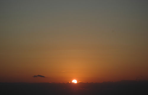 ↑間もなく初日の出が見えそうです。背景もだいぶ明るくなってきました。 |