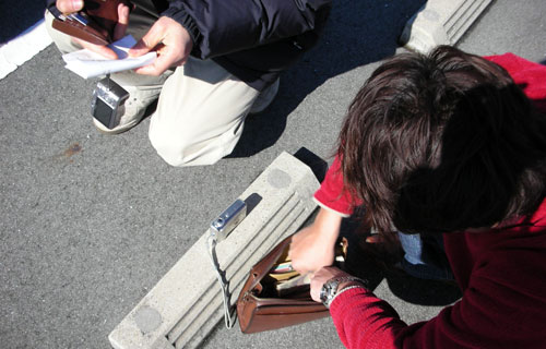 ↑シメシメとカバンに銭をしまうよっち悪代官!(うそ、ジャンパー代徴収です)キモッ!おっさんペアルック(爆) ![]()
