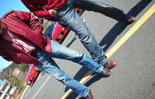 この日の二人は、同じ靴に同じようなジーンズに、同じ赤色の上着と