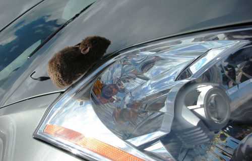 ↑おっと、ヘッドライトの上を歩くじけさん!いつの間にそんな姿に?