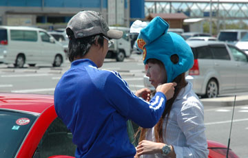 ↑しっかりとピースして写真を撮りました!被り物を承諾する女性は貴重な存在です。