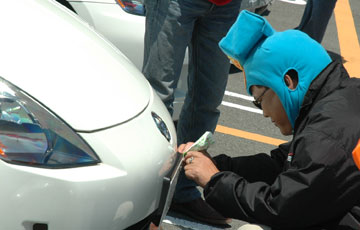 ↑FAL中の中でも特に作業が得意なアレックスさん。今日は貼り師です!