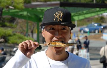 ↑さっそく美味しい匂いに釣られて・・・かぶりついちゃっています!「んん、うめぇ〜」