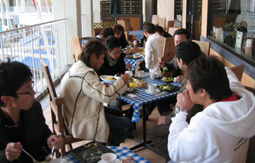 ↑寒さに負けず、みなさん外で談義に花が咲きます。