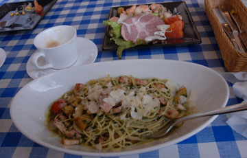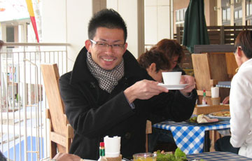 ↑席があいてないので外ぉーー。サラダ食いすぎ(爆笑)