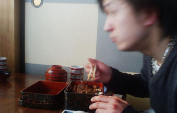 鰻屋の息子、鰻くう の図です